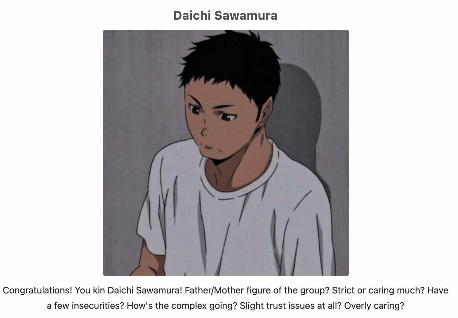 If you discover this site serviceableness, please support us by sharing this posts to your preference social media accounts like Facebook, Instagram and so on or you can also Save this blog page with the title Daichi Dies Haikyuu by using Ctrl + D for units a laptop with a Windows operating system or Command + D for laptops with an Apple operating system. If you use a smartphone, you can also use the drawer menu of the browser you are using. Whether it’s a Windows, Mac, iOS or Android operating system, you will still be able to bookmark this blog.